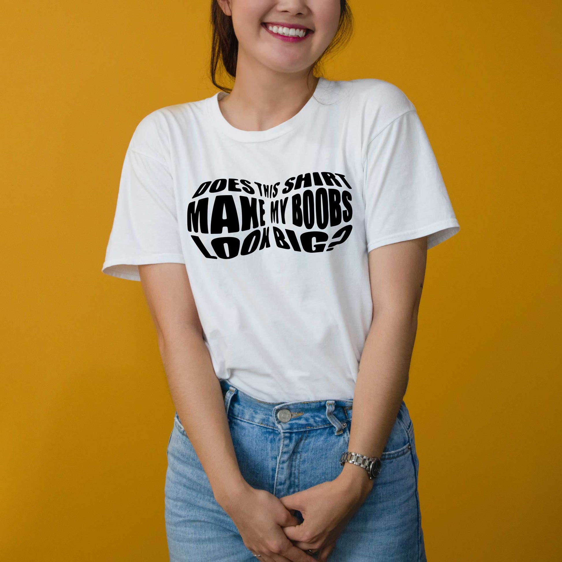 Camiseta de algodón 3D boobs disponible en blanco y negro.