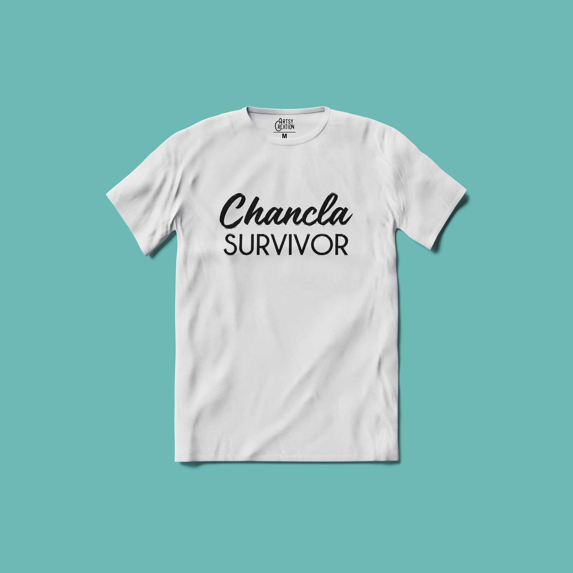 Camiseta de algodón superviviente Chancla disponible en blanco y negro.