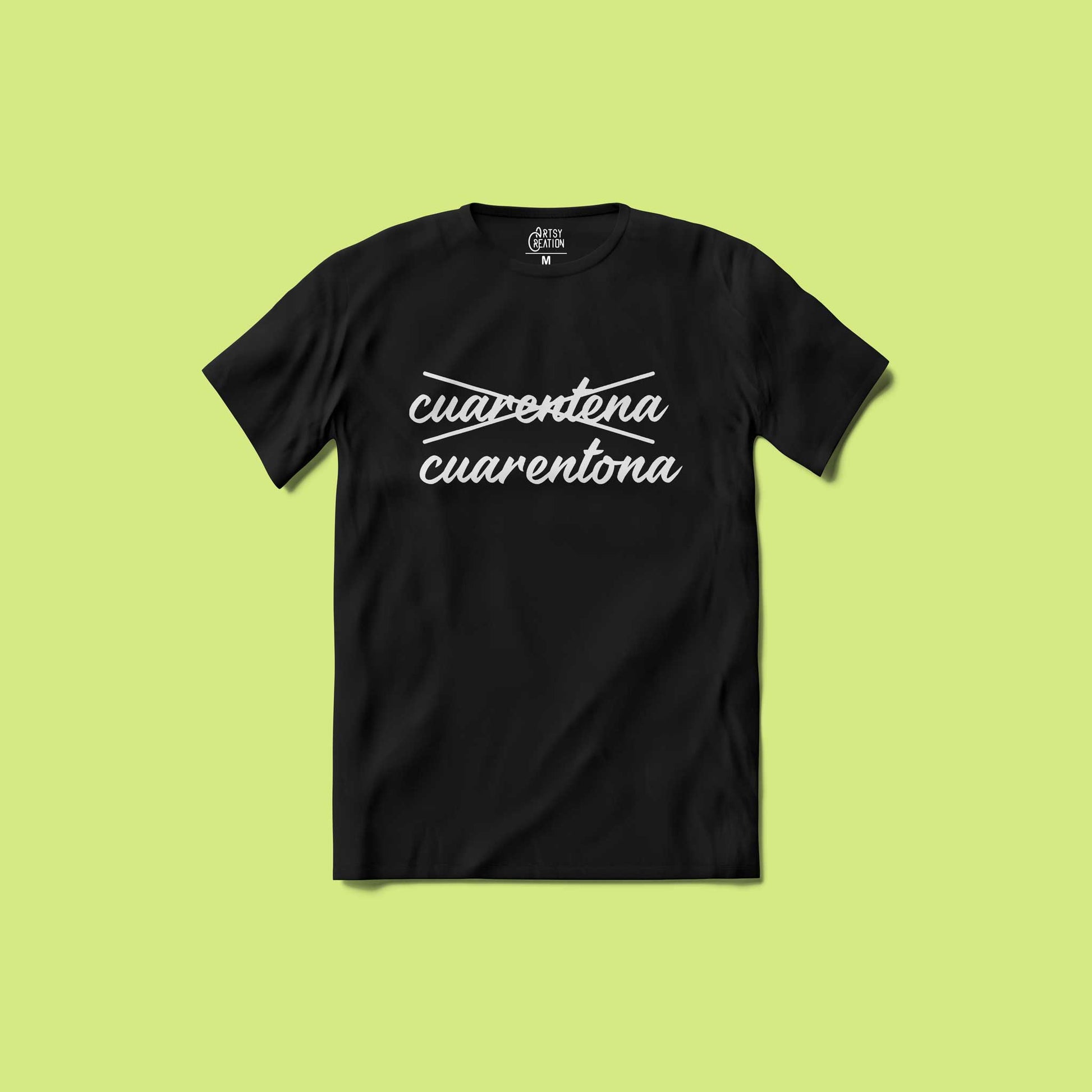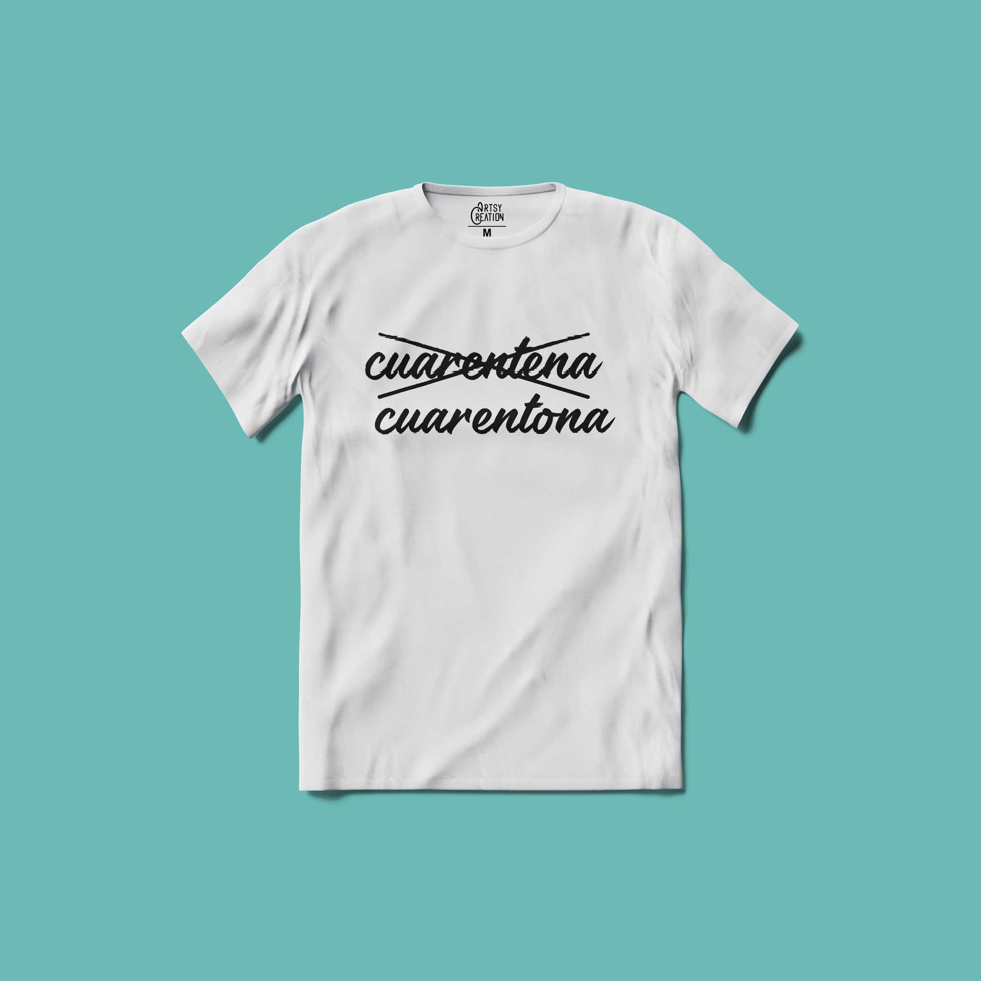 Camiseta de algodón Cuarentona disponible en blanco y negro.