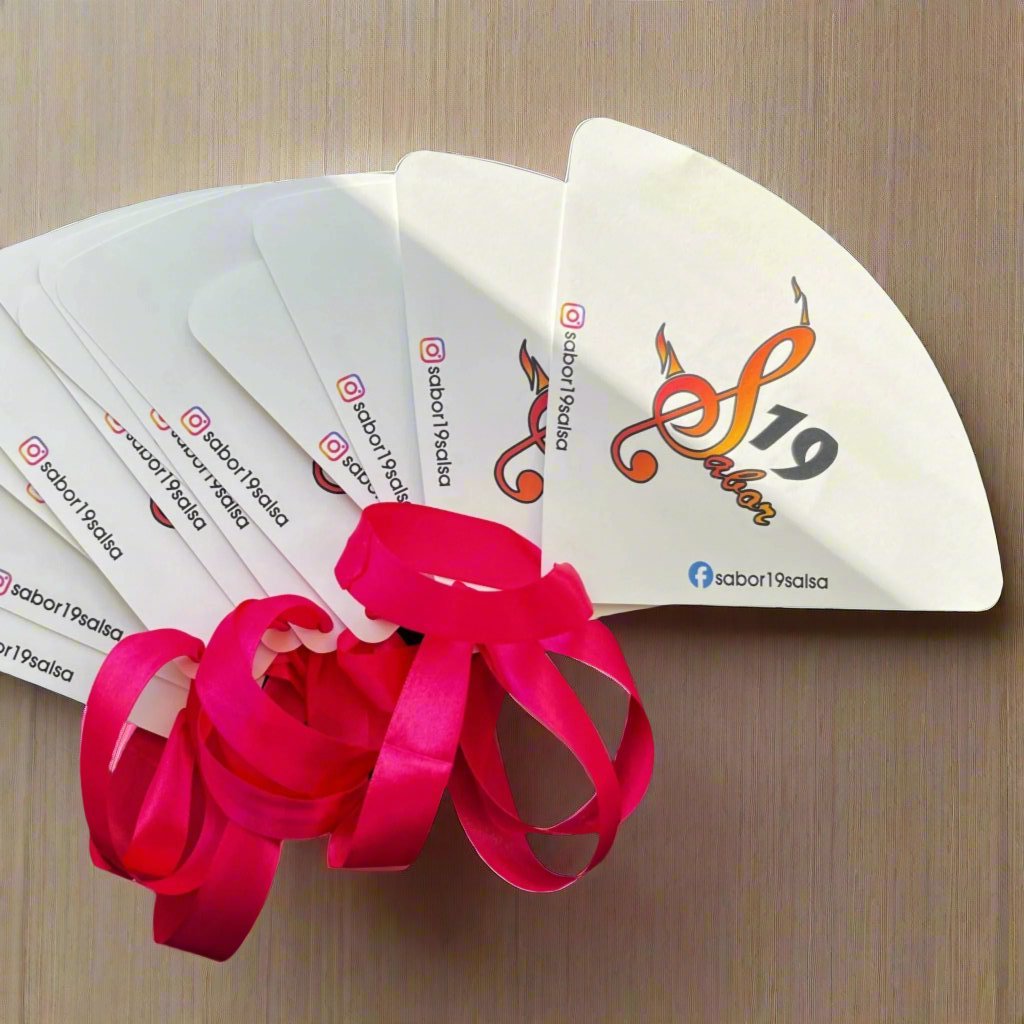 These handheld fans feature a convenient black ribbon that allows for easy transport and on-the-go use. Ideal for outdoor events, they combine style and practicality.