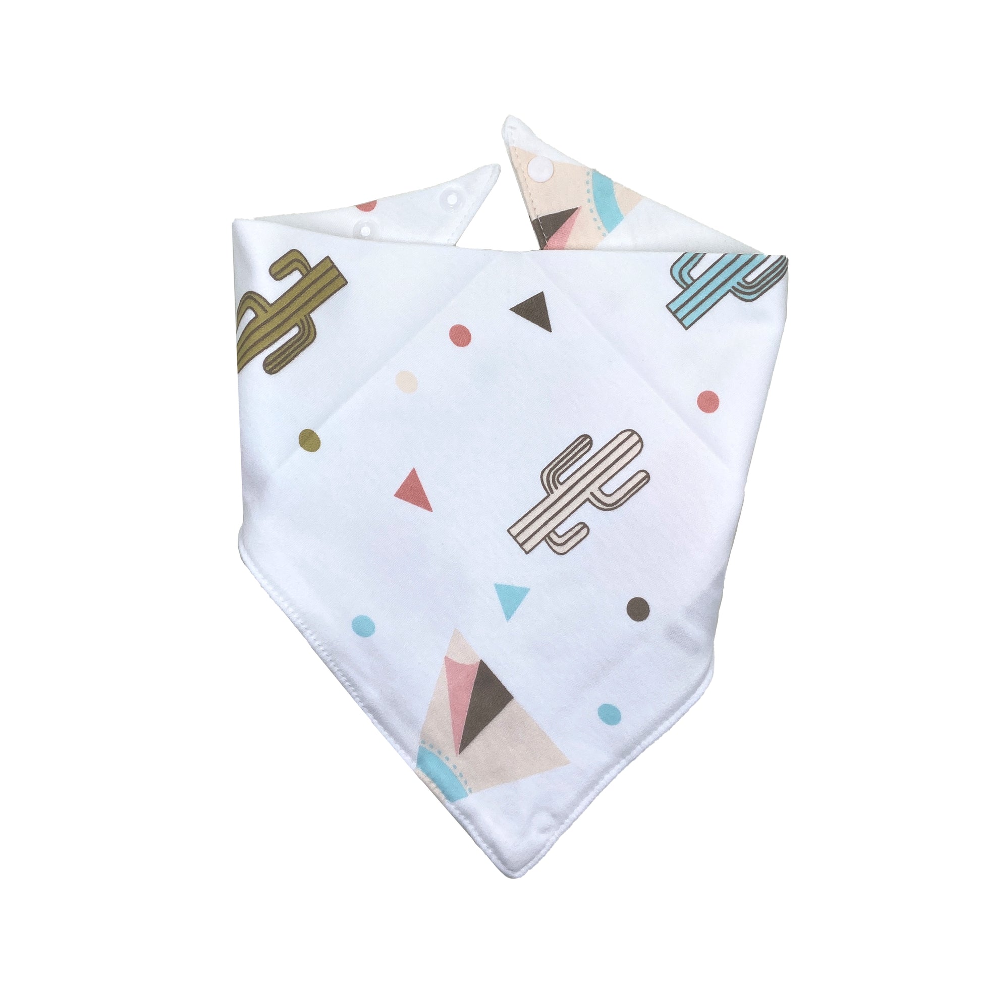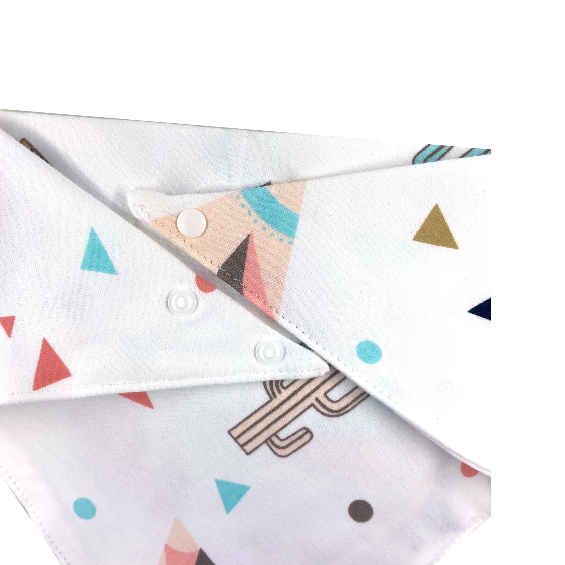 Our bandana is reversible, it snaps on at the neck for a secure and comfortable fit. All bandanas have a set of 2 snaps so you can find your perfect fit. They can be folded to your preferred length, perfect for short-legged fur babies.