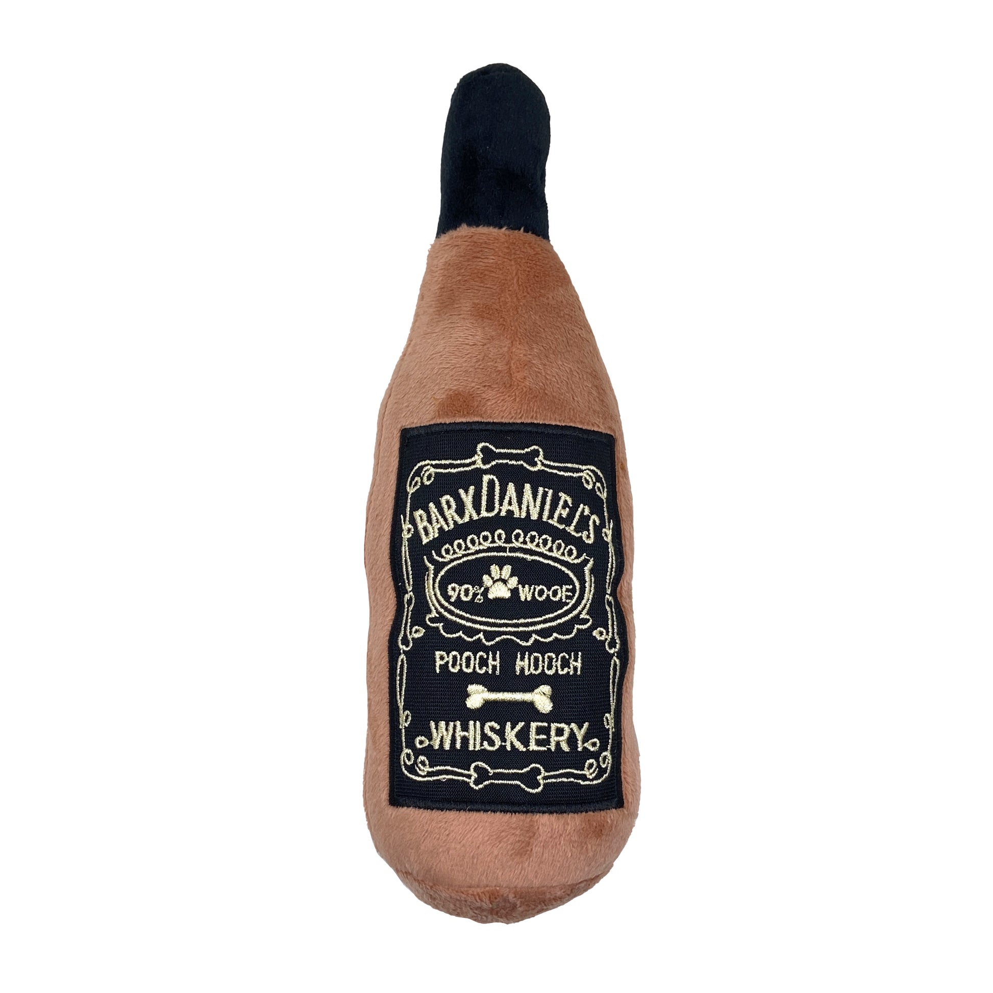 Happy Hour Bark Daniels bottle, perfect to get your doggo hyped up, contains a squeaky for their entertainment.