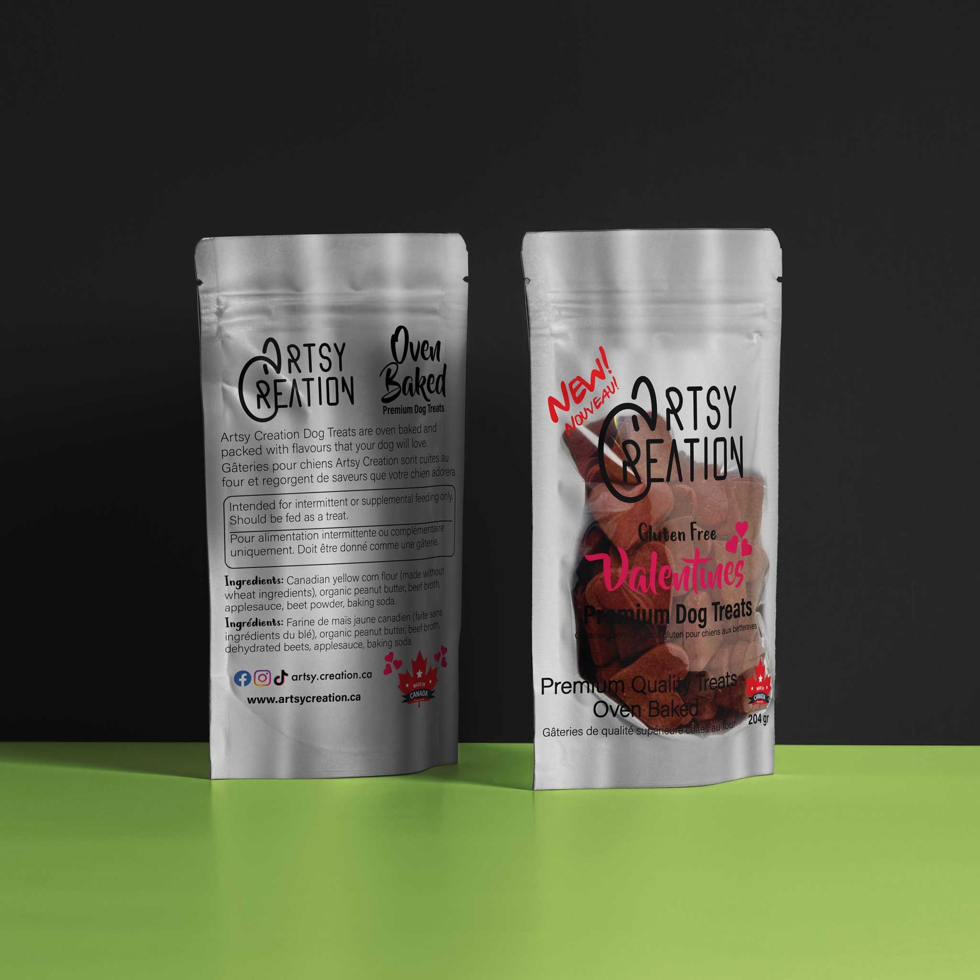 Ingrediénts: Farine de maïs jaune canadien (faite sans ingredients du blé), organic peanut butter, beef broth, dehydrated beets, applesauce, baking soda.