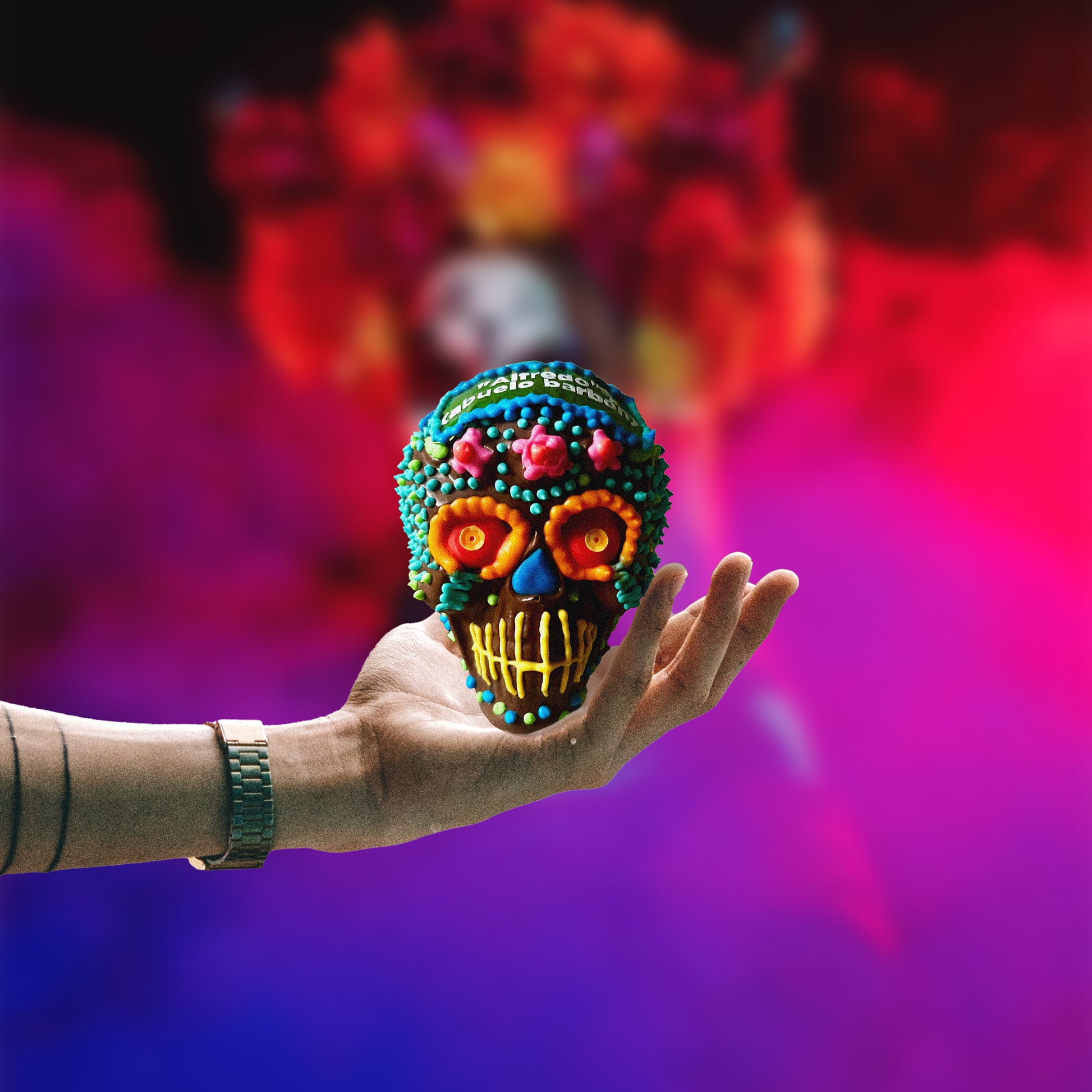 This unique large Chocolate Skull is perfect for Day of the Dead altars. It's made from premium chocolate and pastillage decoration, making it an ideal choice for a special occasion. It's an eye-catching decoration, sure to impress your guests.
