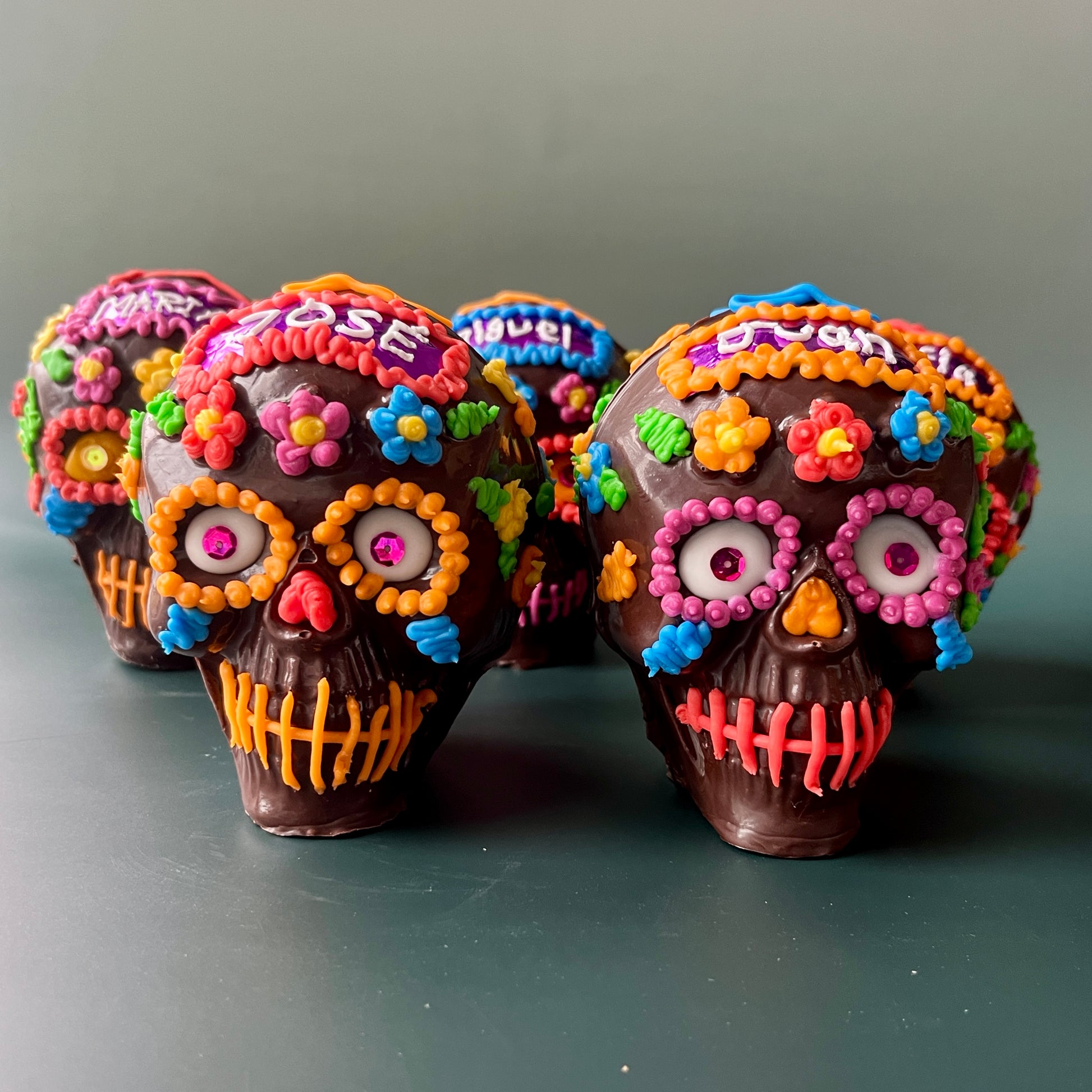Create a bold visual centerpiece with our Large Chocolate Skull (11 cm) — handcrafted using premium chocolate and decorated with intricate pastillage details. This striking piece is ideal for Day of the Dead altars, corporate gifting, boutique seasonal displays, cultural events, or themed luxury décor.