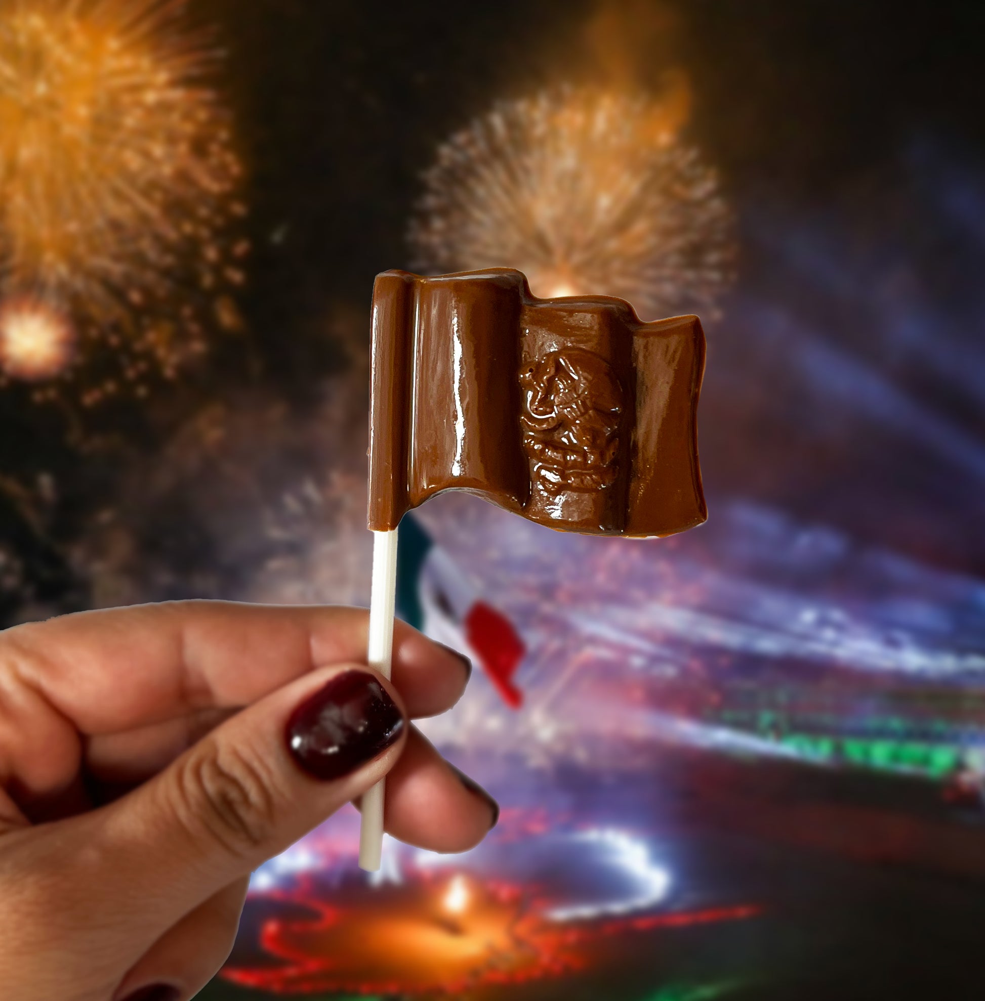 Indulge in a delicious chocolate lollipop, a perfect treat to honor Mexico's independence day. Made from high-quality chocolate, this unique lollipop is a tasty way to celebrate the occasion. Enjoy the rich and creamy flavor while showing your support for Mexico.