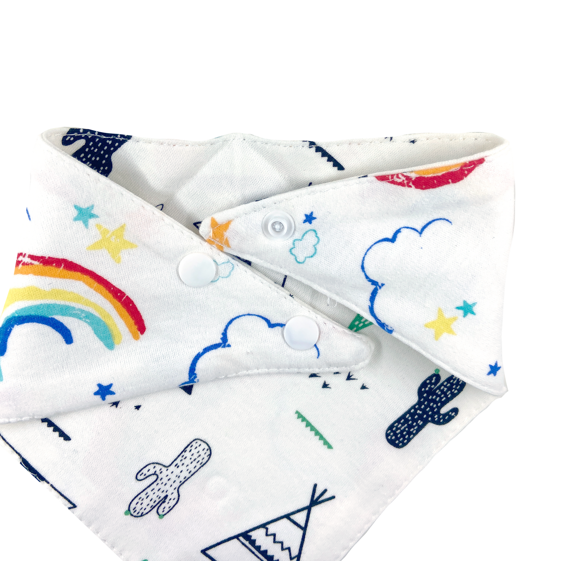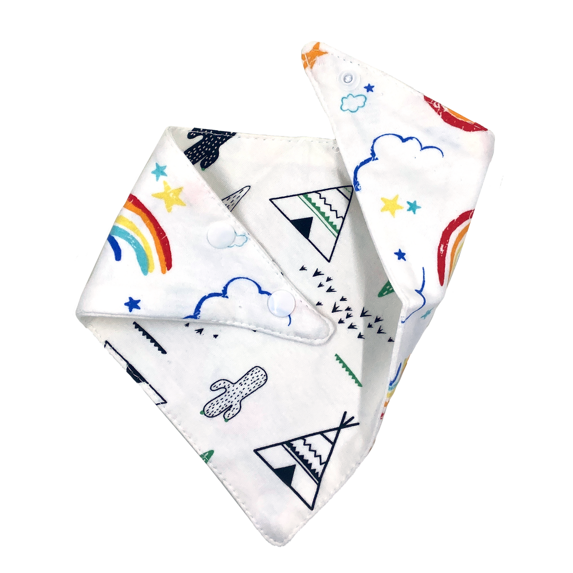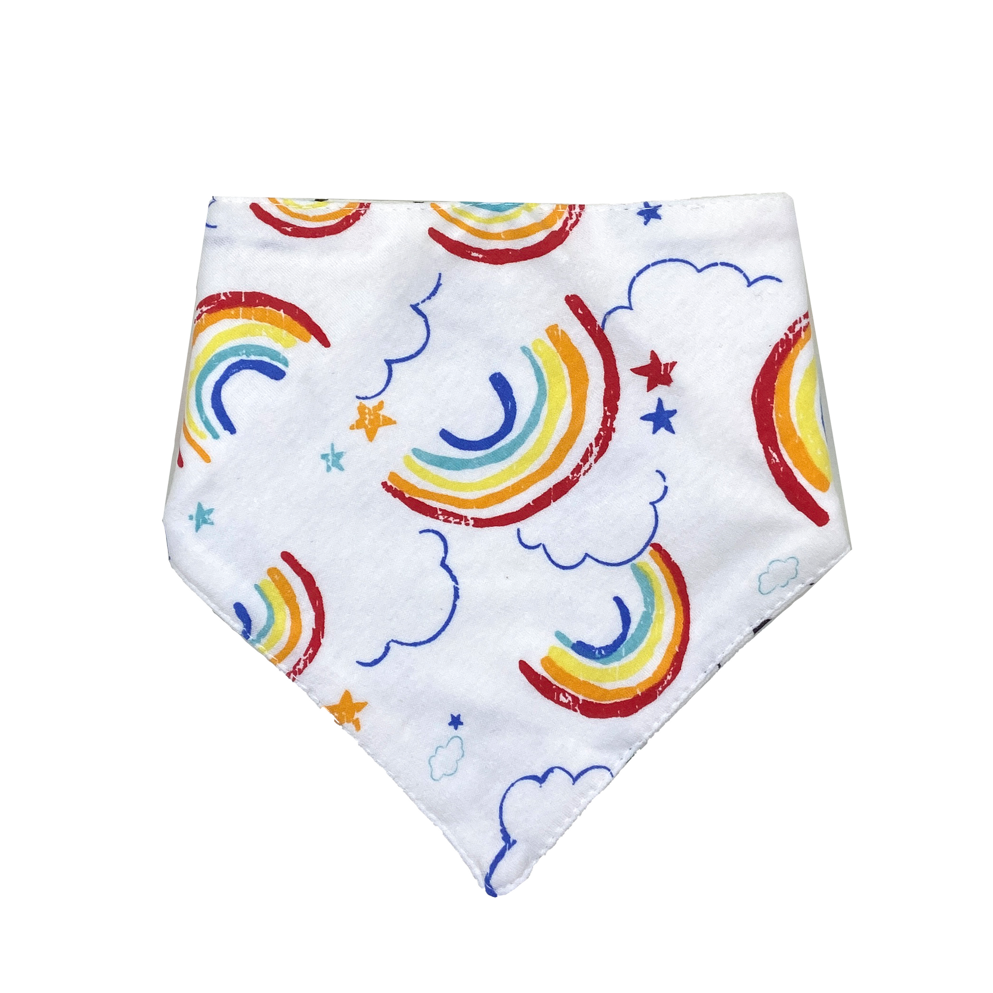 Our bandana is reversible, it snaps on at the neck for a secure and comfortable fit. All bandanas have a set of 2 snaps so you can find your perfect fit. They can be folded to your preferred length, perfect for short-legged fur babies.